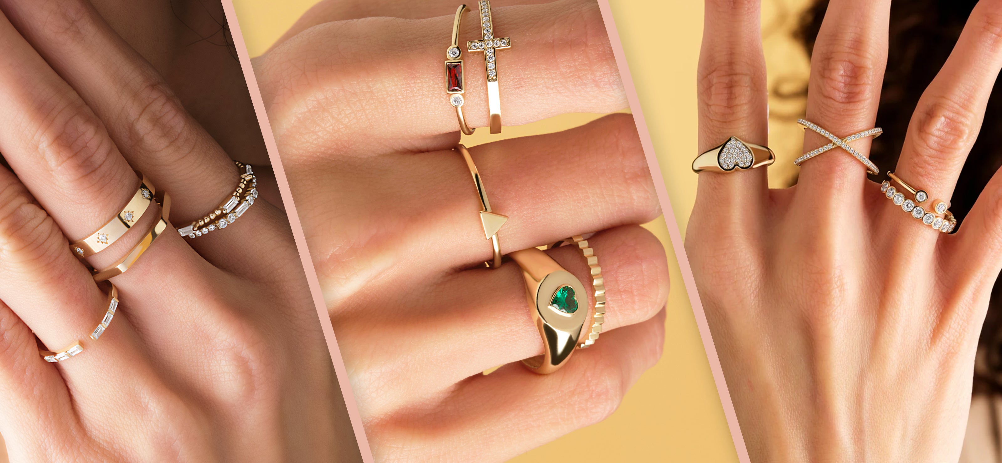 Solid Gold Triple Ring Interlocking Bands Pavé Diamond