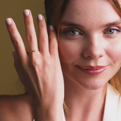 - Color options include yellow gold band, rose gold ring, and white gold ring to match any preference