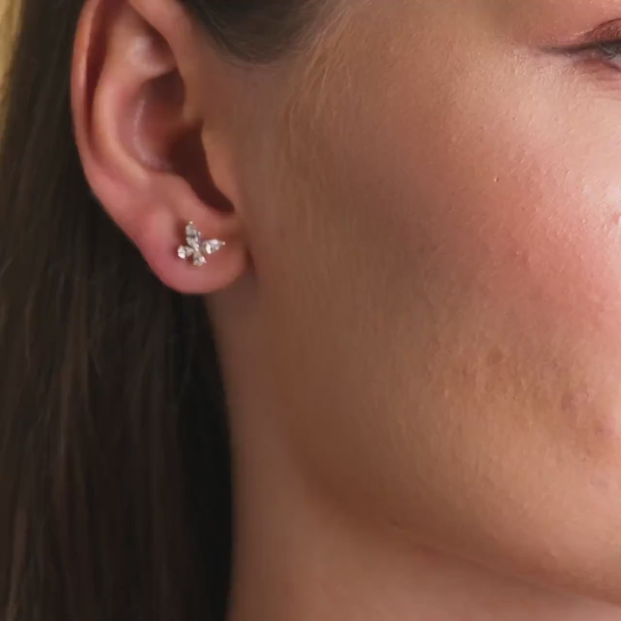 These butterfly cz earrings are beautifully crafted to bring a delicate nature motif jewelry piece into your everyday collection. Featuring four sparkling stones arranged as a tiny butterfly, these 14k gold butterfly studs combine elegance with comfort for a dainty yet eye-catching look. Perfect as a gift for her or a personal treat, these diamond stud earrings deliver timeless style and lasting shine.