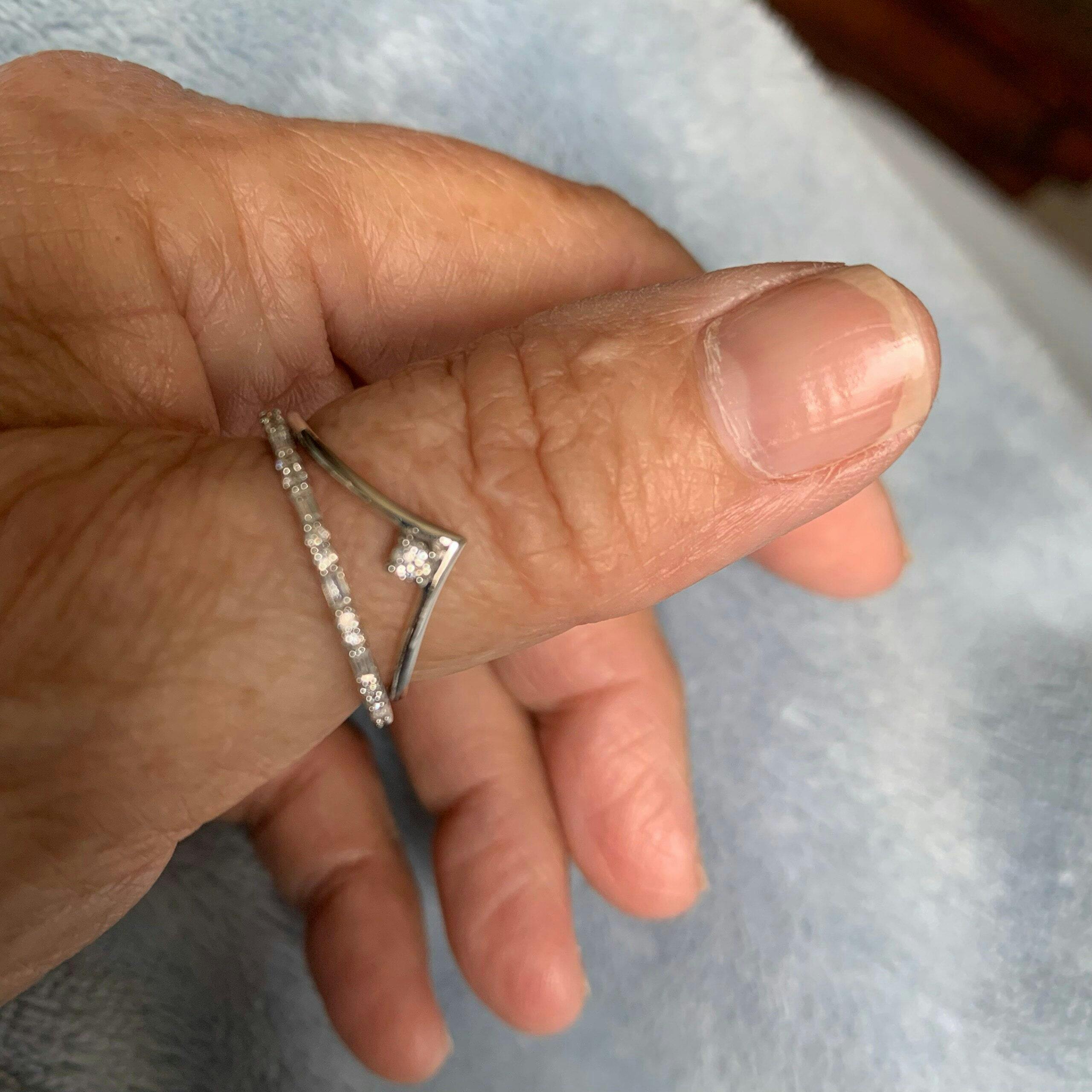 Our white gold v ring is a dainty diamond chevron band designed as a stacking wedding band that perfectly complements your engagement ring, delivering elegance and everyday comfort. Crafted from premium 14k solid gold, this wishbone curved ring features a minimal nesting design that fits seamlessly with other rings while symbolizing good luck and new beginnings. Ideal as a graduation gift ring or a meaningful present for her, this handcrafted gold ring offers both style and sentiment.