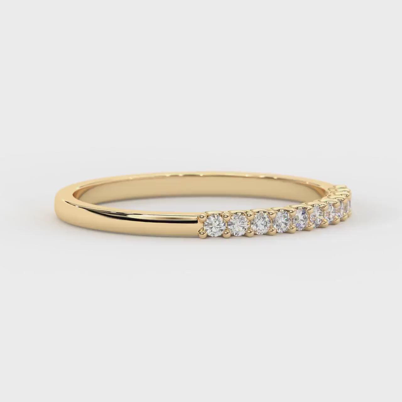 Our dainty diamond engagement ring is a minimalist masterpiece designed to celebrate love with subtle elegance. Crafted from premium solid gold, this white gold ring features 11 prong set diamonds that shimmer brilliantly, delivering a timeless sparkle. This delicate gold band is perfect for those seeking a refined and understated look, ideal as a stacking wedding ring or a promise band for women who appreciate handcrafted gold jewelry. The thin wedding ring’s slim profile ensures comfortable daily wear while showcasing exquisite craftsmanship.