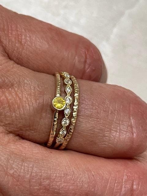 • Versatility: Perfect as a delicate CZ diamond ring on its own or stacked with other stacking gold rings