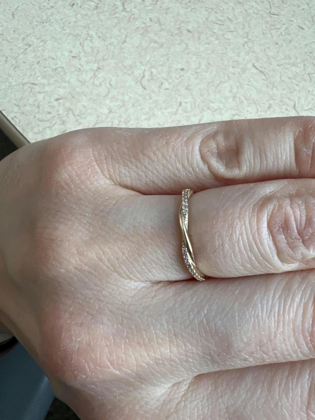 Made with precision, the 14k gold twist ring measures 1.76 mm in width and 0.99 mm in thickness, balancing refined detail with lasting strength. It showcases a diamond pave ring setting of 20 AAA-grade cubic zirconia stones, each sized at 0.98 mm, adding sparkle without compromising comfort. Available in rose gold ring, yellow gold band, and white gold ring options, it suits various personal styles and preferences.