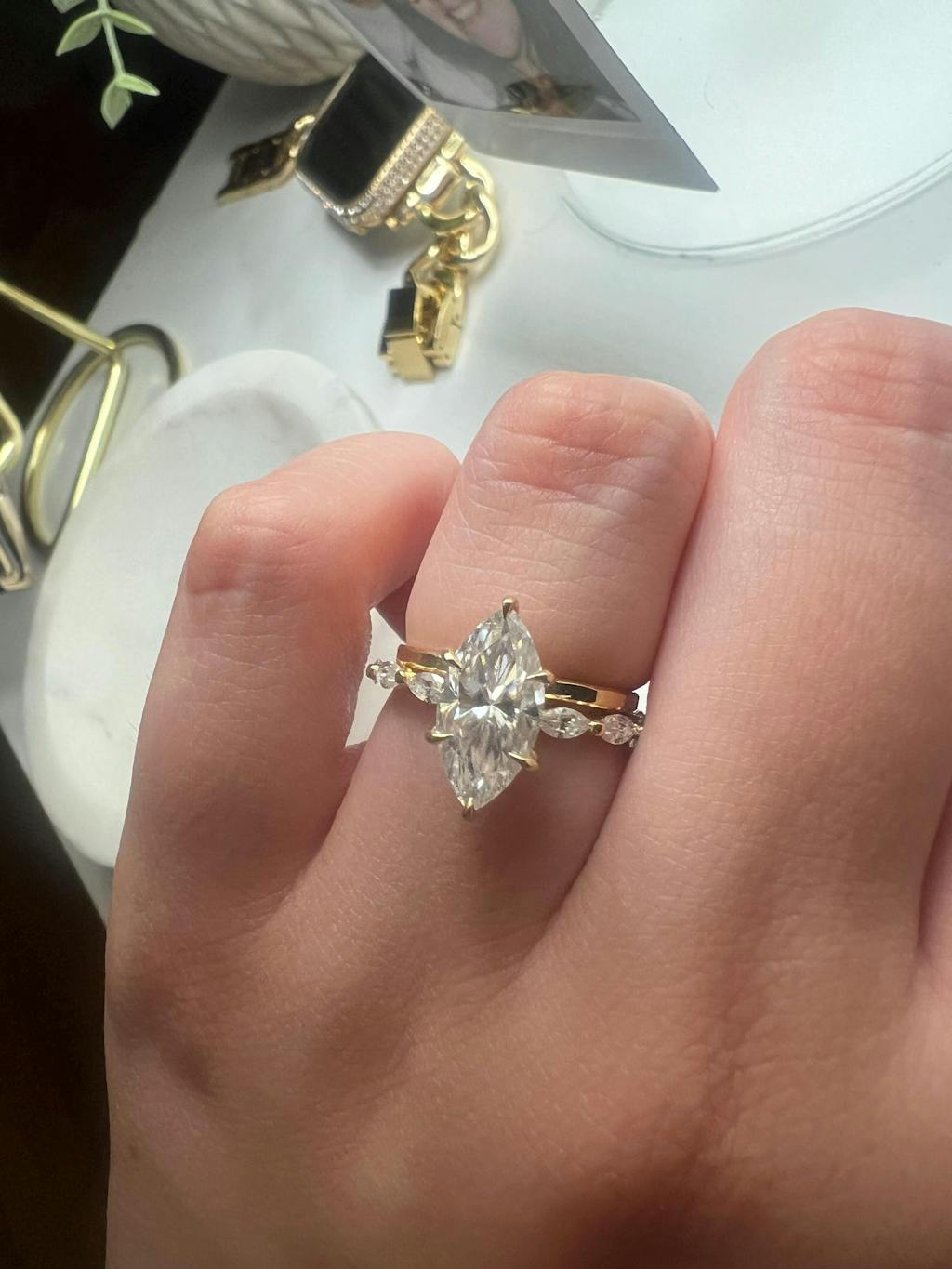 • Personalized wedding band with option to engrave name, date, or special symbols → adds meaningful customization
