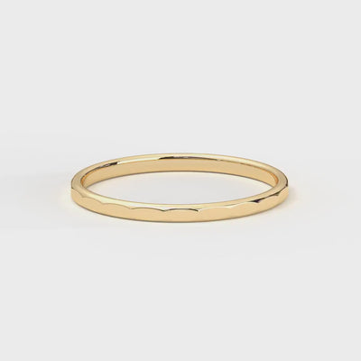 This gold hammered wedding band is a handcrafted solid gold ring designed to celebrate love with elegance and personal meaning. This delicate hammered ring features a skinny stacking ring design that measures approximately 1.47 mm wide and 0.93 mm thick, offering lasting comfort and durability for everyday wear. As a personalized wedding band, it allows you to engrave name, date, or special symbols inside the band, creating a unique piece that perfectly fits your style. Available in yellow, rose, and white gold finishes, this solid gold round ring complements any look with its subtle hammered texture and minimalist couple rings design. Each custom bridal ring undergoes strict quality checks and arrives beautifully packaged in an elegant jewelry box, backed by customer praise for its timeless style and lasting shine.