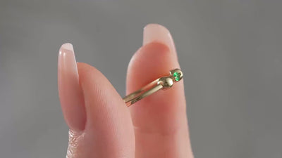 The marquise green stacking ring is a dainty gold ring designed to offer a minimalist stacking ring experience with a modern birthstone jewelry twist. This solid gold jewelry piece features a marquise cut ring centerpiece set with an emerald CZ ring, delivering a personalized gemstone ring that enhances your everyday gold ring collection. Measuring approximately 3.30 mm at the top and tapering to 1.25 mm at the bottom, this thin gold band ensures comfort without sacrificing style. The AAA grade emerald CZ stone is sized at 3.0 x 1.5 mm and can be customized according to your birth month for a truly custom birthstone ring. Crafted with polished solid gold bead accents, it creates a refined, elegant look perfect as part of your gold stacking band collection.