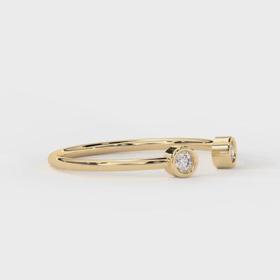 Our open diamond ring is a handcrafted gold ring designed to bring elegance and meaning to your jewelry collection. Featuring a dual diamond bezel design set in solid 14k gold, this open cuff ring combines style and symbolism, making it perfect for expressing the bond between loved ones. With two round diamonds measuring 2.25 x 2.25 mm each in a secure bezel setting, this minimalist open ring offers both beauty and durability for everyday wear.