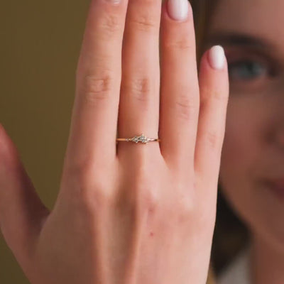 This 14K gold cluster ring offers a minimalist gold ring design featuring a delicate cluster of AAA cubic zirconia round cut stones that sparkle brilliantly. Crafted as a thin band ring, this stackable jewelry band enhances everyday wear with elegance and comfort. Available in yellow gold band, rose gold ring, and white gold jewelry options, this handmade gold ring is perfect as a gift for her jewelry collection.