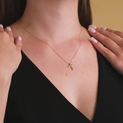 This solid gold cross necklace offers a timeless minimalist faith pendant designed to bring a meaningful religious jewelry gift that suits everyday wear. Crafted from solid gold, this dainty cross pendant symbolizes protection, faith, and inner strength while adding a classic touch to any outfit. The smooth, flat cross pendant measures approximately 0.39 inches wide and 0.59 inches tall, hanging from a delicate cable chain available in multiple lengths and colors to perfectly match your style or gifting needs.