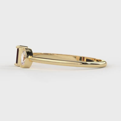 Our 14K gold birthstone ring is a handcrafted gold open ring designed to showcase your chosen gemstone with elegance and style. This minimalist gold ring features a stunning marquise diamond ring and baguette cut ring stones set in a secure bezel setting ring, creating a dainty gemstone ring that delivers both sparkle and durability. Crafted from premium 14k yellow gold ring, this custom birthstone ring offers a perfect gift for her jewelry collection or as an elegant gold band for everyday wear.