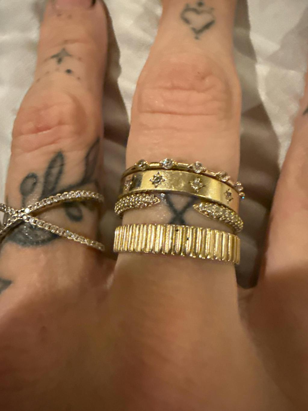Our pave diamond cuff ring pairs beautifully with other stacking fashion rings or stands out as a unique open ring statement piece on its own. Its dainty stackable ring style blends seamlessly into any jewelry collection while providing eye-catching brilliance.