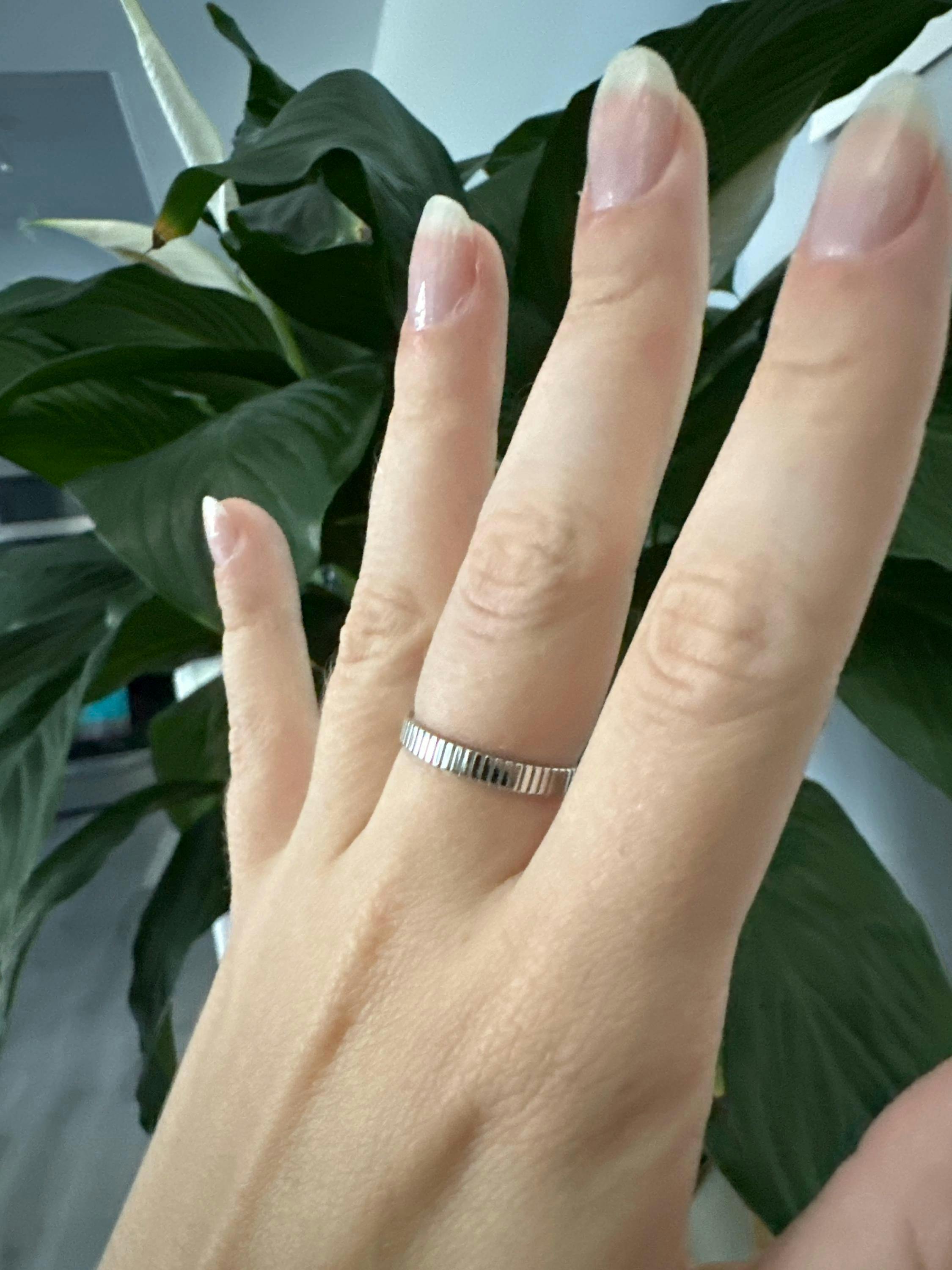 - Fluted wedding band texture providing unique depth and character to the classic shape
