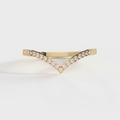 The V Shaped Diamond Ring is a stunning half eternity ring designed to bring elegance and luck to your everyday style. This Chevron gold band features 23 sparkling round cubic zirconia stones set in a minimalist contour band crafted from durable 14k solid gold. Its unique V shape symbolizes fortune, making it an ideal choice as a curved wedding band, stacking midi ring, or a meaningful gift for her. Handcrafted gold jewelry ensures each piece is made with precision and care, offering comfort and lasting shine.